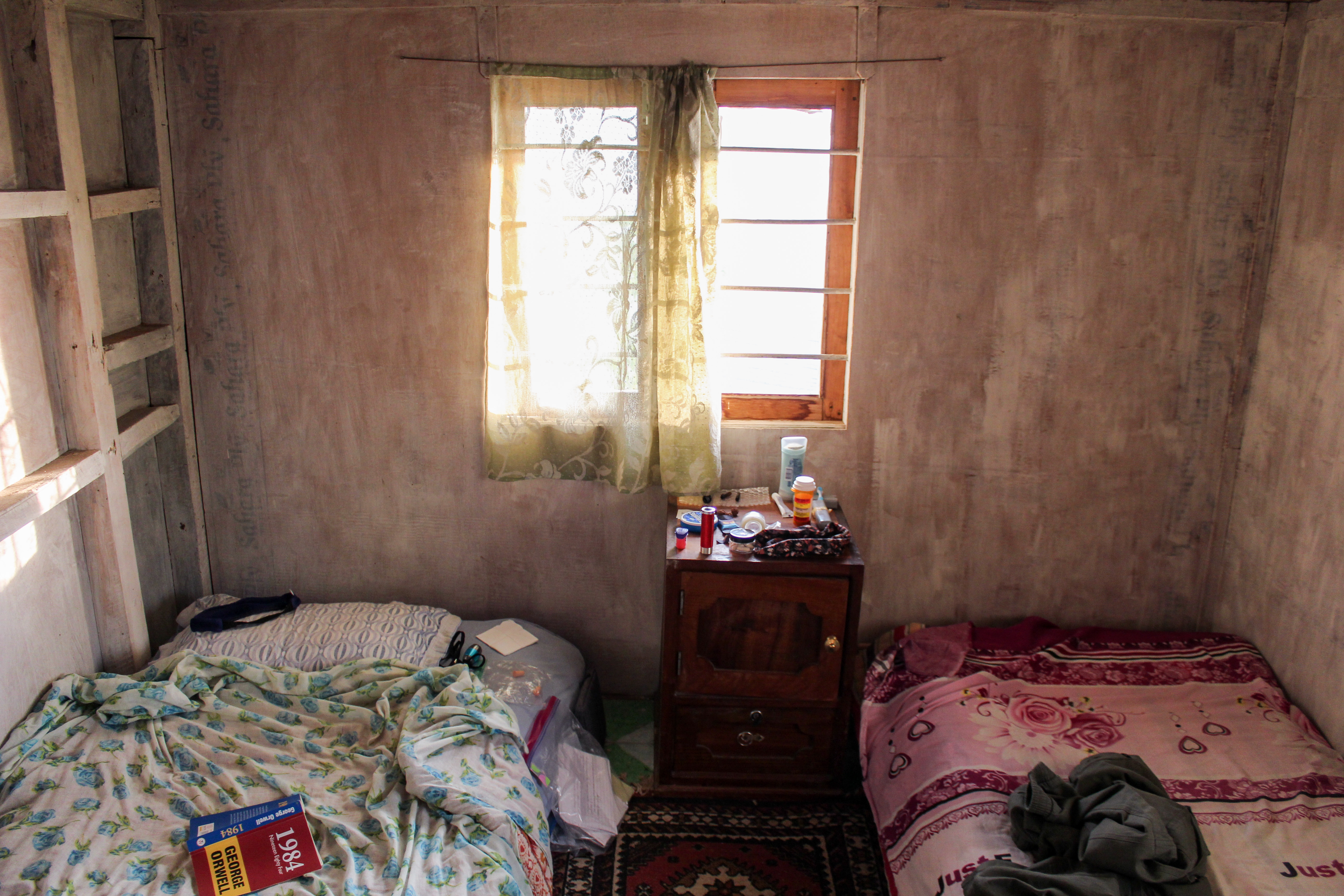 I dropped my backpack at the foot of one bed and followed Kaushila out onto a wooden walkway. It went over the goat shed and ended in a tinny door to a stall with a Western toilet. The stall was dark except for a palm-sized triangular hole in the wall, which blazed with daylight. Beside a toilet sat a small bucket, a dirt-flecked bar of soap, and a faucet piped in through the wall.